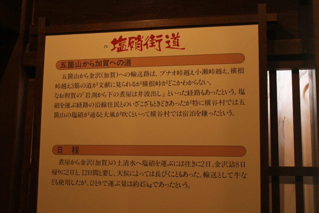 ここは塩硝の館という、焔硝づくりを詳しく解説している場所。(こちらでは焔硝ではなく、一文字目が塩だけど、焔硝っていっぱい呼び方があるのかな?)