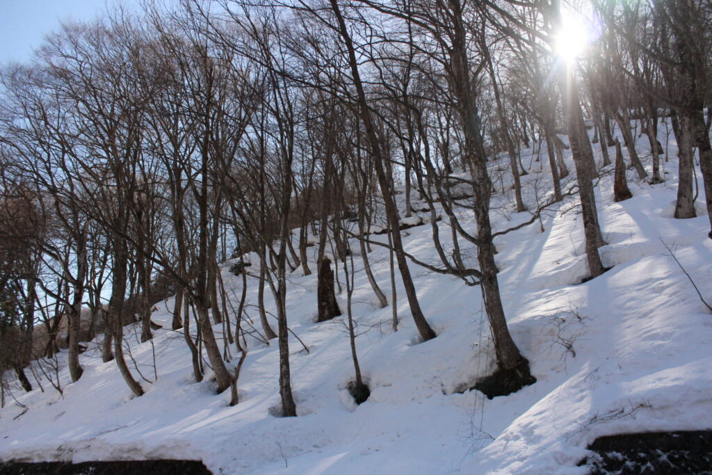 2月なのにとても暖かい日で、雪もだいぶ減っていました。日陰だけ雪が残っている。