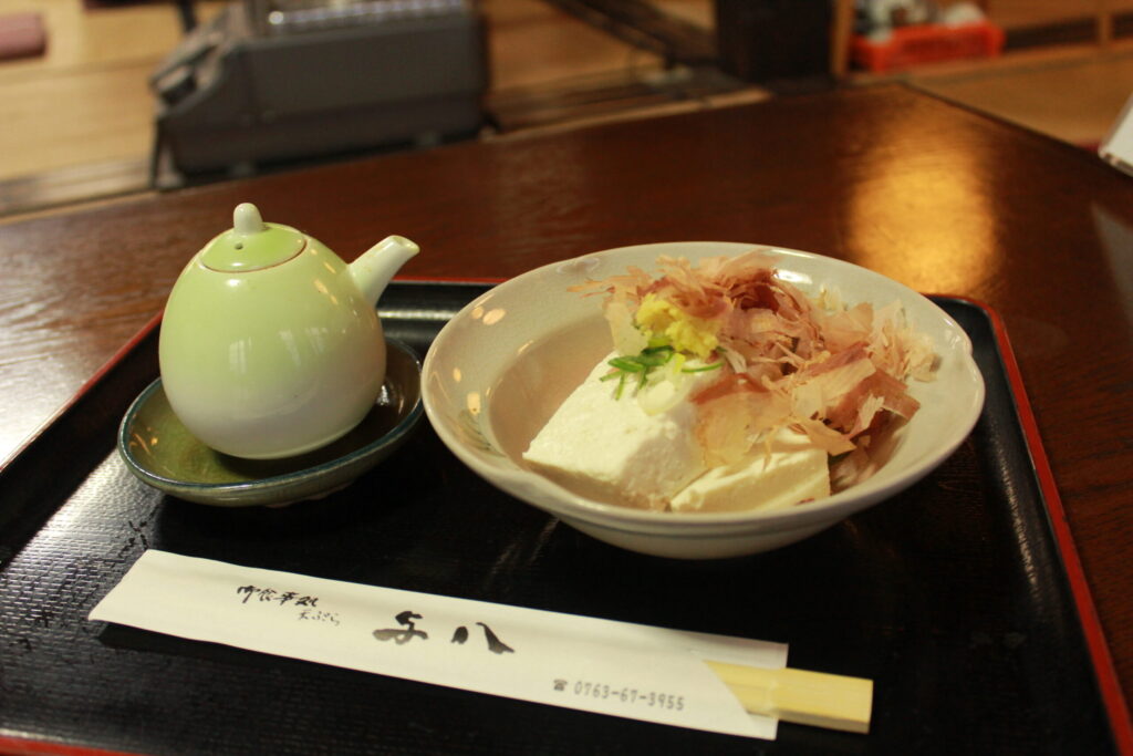 「五箇山豆腐やっこ」と「五箇山豆腐さしみ」があったので違いを聞くと、やっこが生姜付きでさしみがワサビ付きとのことでした。